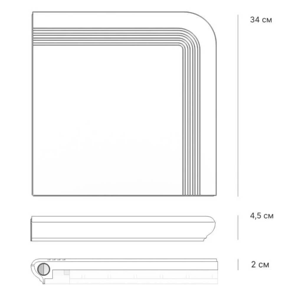 Ступень угловая Verona из искусственного камня для ступеней крыльца, размеры 340х340х20мм цвет Коричневый.