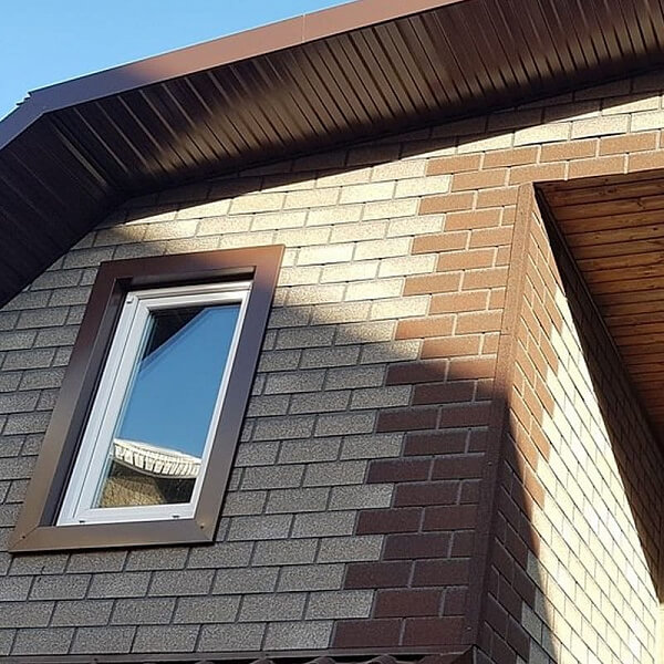 Плитка гибкая битумная для фасада Технониколь Хауберг коллекция Кирпич цвет Серо-Бежевый размеры 1000х250х3мм (в упаковке 20 штук общей площадью 2 м2).