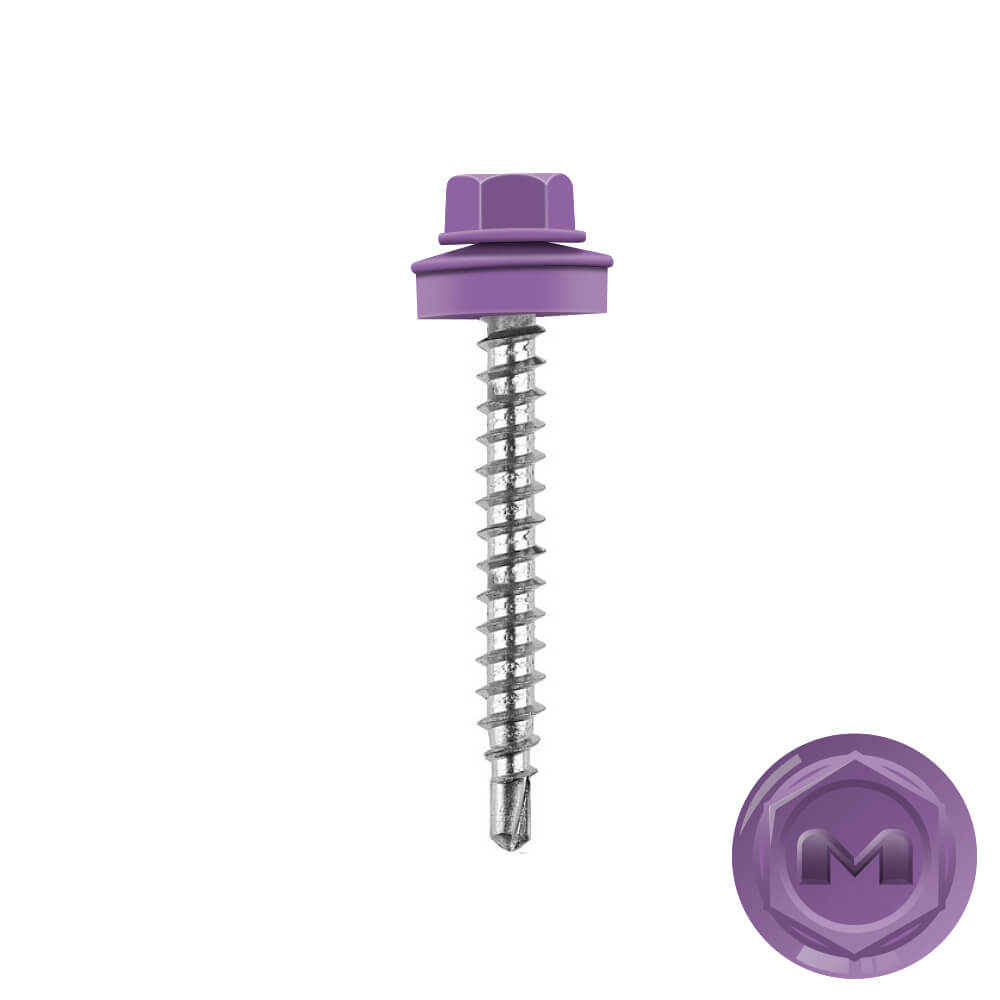 Кровельные саморезы Daxmer (Даксмер) по дереву цветом RAL4005 Сиреневый 4,8*35мм окрашиваются УФ-стойкой полиэфирной порошковой краской. Цинковое антикоррозийное покрытие обеспечивает длительный срок службы саморезов (не менее 25 лет). Специальная металлическая шайба с ЕРDМ - уплотнителем обеспечивает плотное прилегание профилированного металла (кровли) к деревянной обрешетке, а также препятствует попаданию влаги.