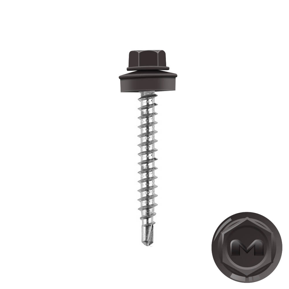 Кровельные саморезы Daxmer (Даксмер) по дереву цветом RAL8019 Темный Шоколад 4,8*35мм окрашиваются УФ-стойкой полиэфирной порошковой краской. Цинковое антикоррозийное покрытие обеспечивает длительный срок службы саморезов (не менее 25 лет). Специальная металлическая шайба с ЕРDМ - уплотнителем обеспечивает плотное прилегание профилированного металла (кровли) к деревянной обрешетке, а также препятствует попаданию влаги.