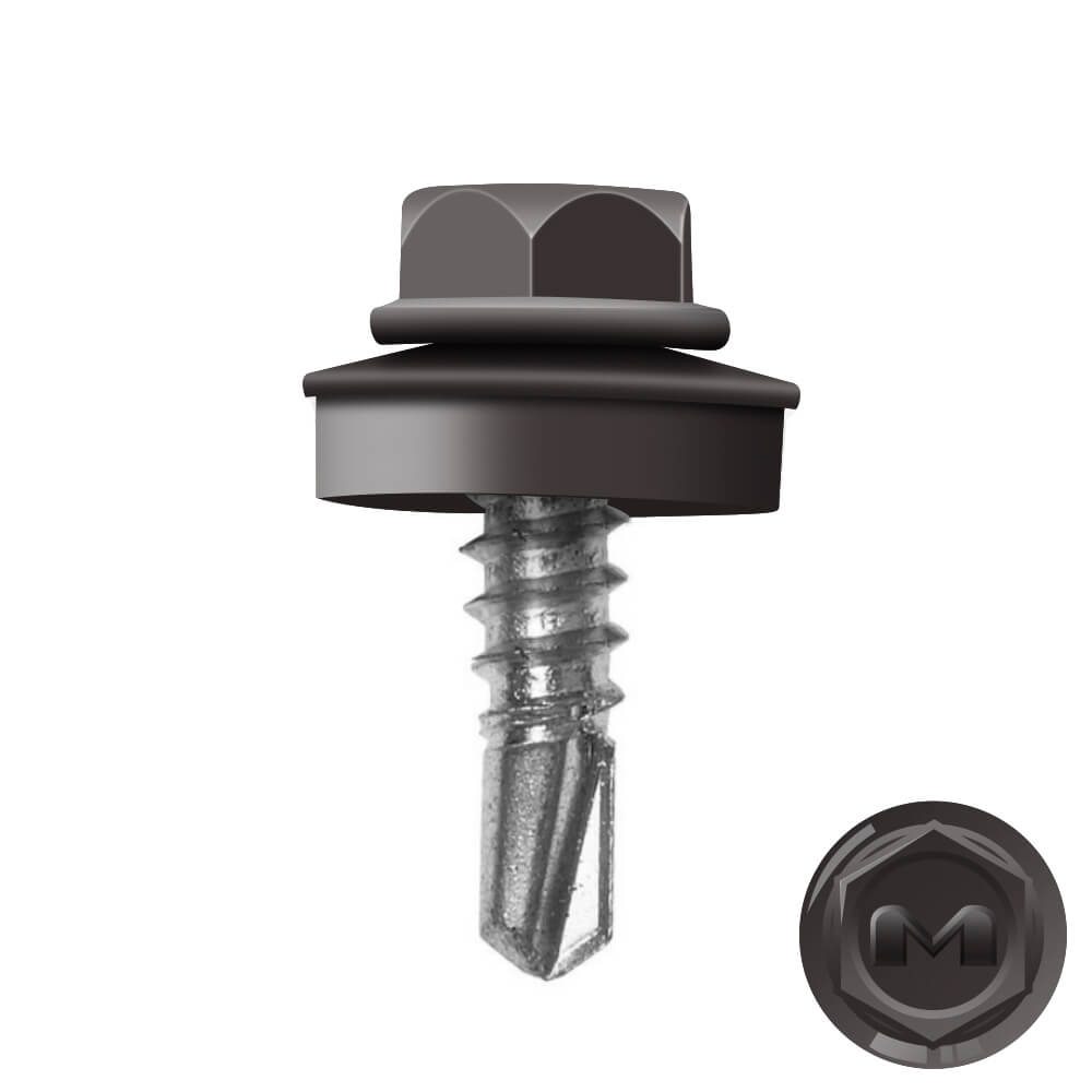 Кровельные саморезы Daxmer (Даксмер) по металлу цветом RAL8019 Темный Шоколад 5,5*19мм имеют частую резьбу, а специальная металлическая шайба с ЕРDМ-уплотнителем 2,8 мм обеспечивает плотное прилегание профилированного металла (кровли) к обрешетке, а также препятствует попаданию влаги. Также ЕРDМ-уплотнитель защищает от перепада температур (за счет высокого содержания каучука), который адаптируется под окружающую температуру и не позволяет кровле или забору «гулять», плотно прижимая листы к основанию.