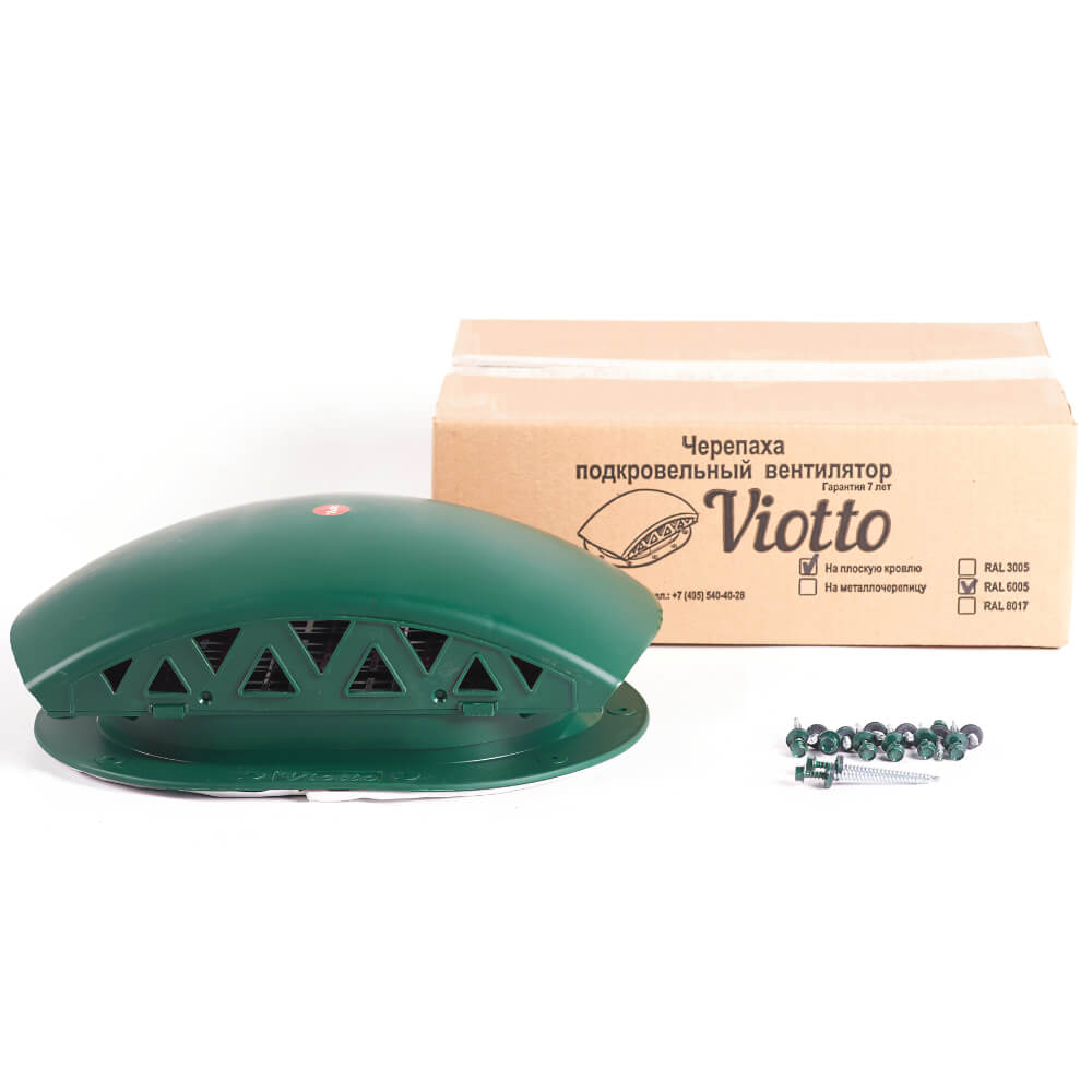 Подкровельный вентилятор "Черепаха" Viotto RAL 6005 Зеленый Мох для готовой мягкой и фальцевой кровли в Твери