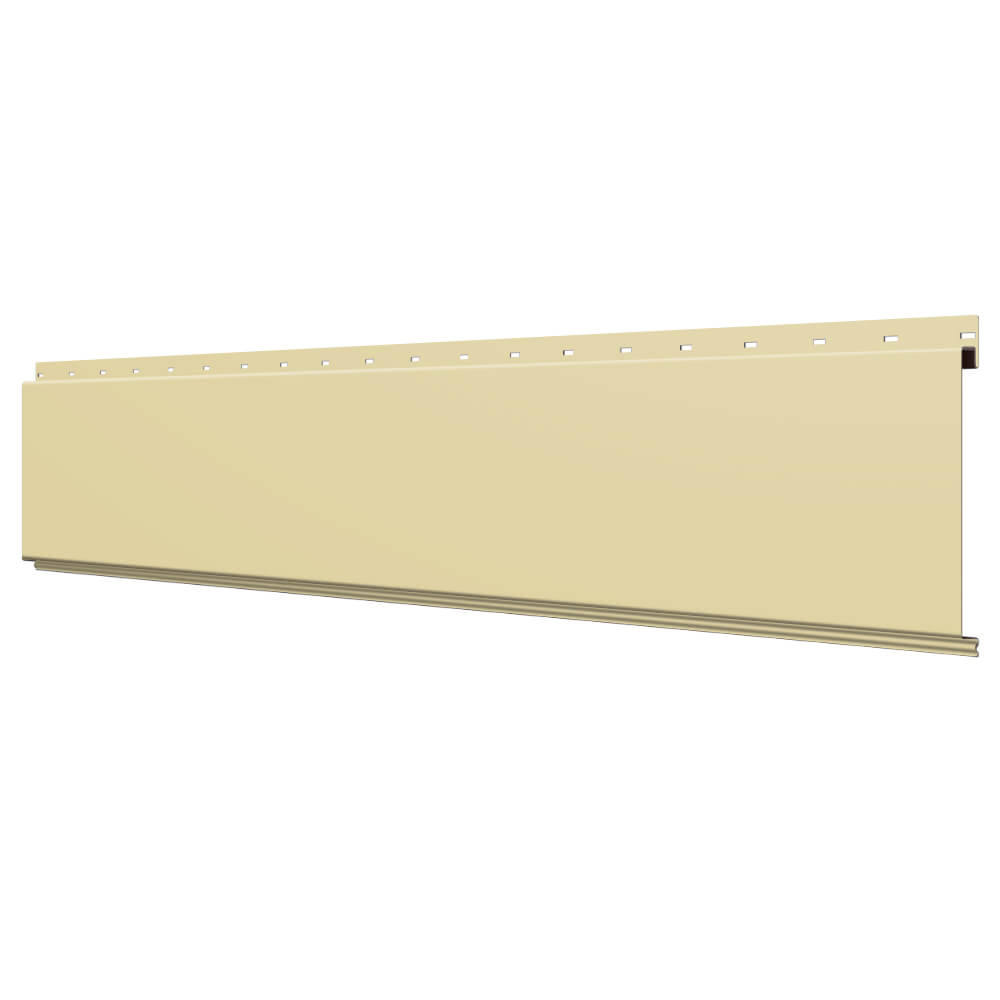 Линеарная потолочно-стеновая панель ГЛАДКАЯ цвет RAL1014 Бежевый применяется в качестве софитов для подшивы крыши, наружной и внутренней отделки потолков, стен, фронтонов фасада дома в Твери.