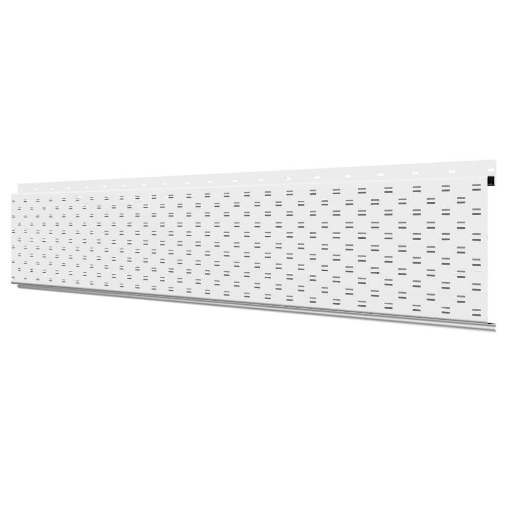 Линеарная потолочно-стеновая панель с ПЕРФОРАЦИЕЙ для вентиляции цвет RAL9003 Белый применяется в качестве софитов для подшивы крыши, наружной и внутренней отделки потолков, стен, фронтонов фасада дома в Твери.