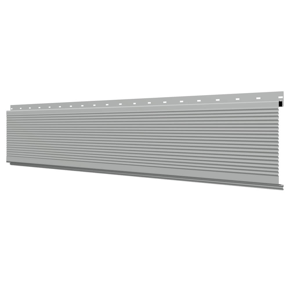 Линеарная потолочно-стеновая панель РИФЛЕНАЯ усиленная цвет RAL9006 Серебро применяется в качестве софитов для подшивы крыши, наружной и внутренней отделки потолков, стен, фронтонов фасада дома в Твери.