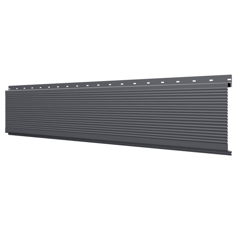 Линеарная потолочно-стеновая панель РИФЛЕНАЯ усиленная цвет RAL7024 Серый Графит применяется в качестве софитов для подшивы крыши, наружной и внутренней отделки потолков, стен, фронтонов фасада дома в Твери.