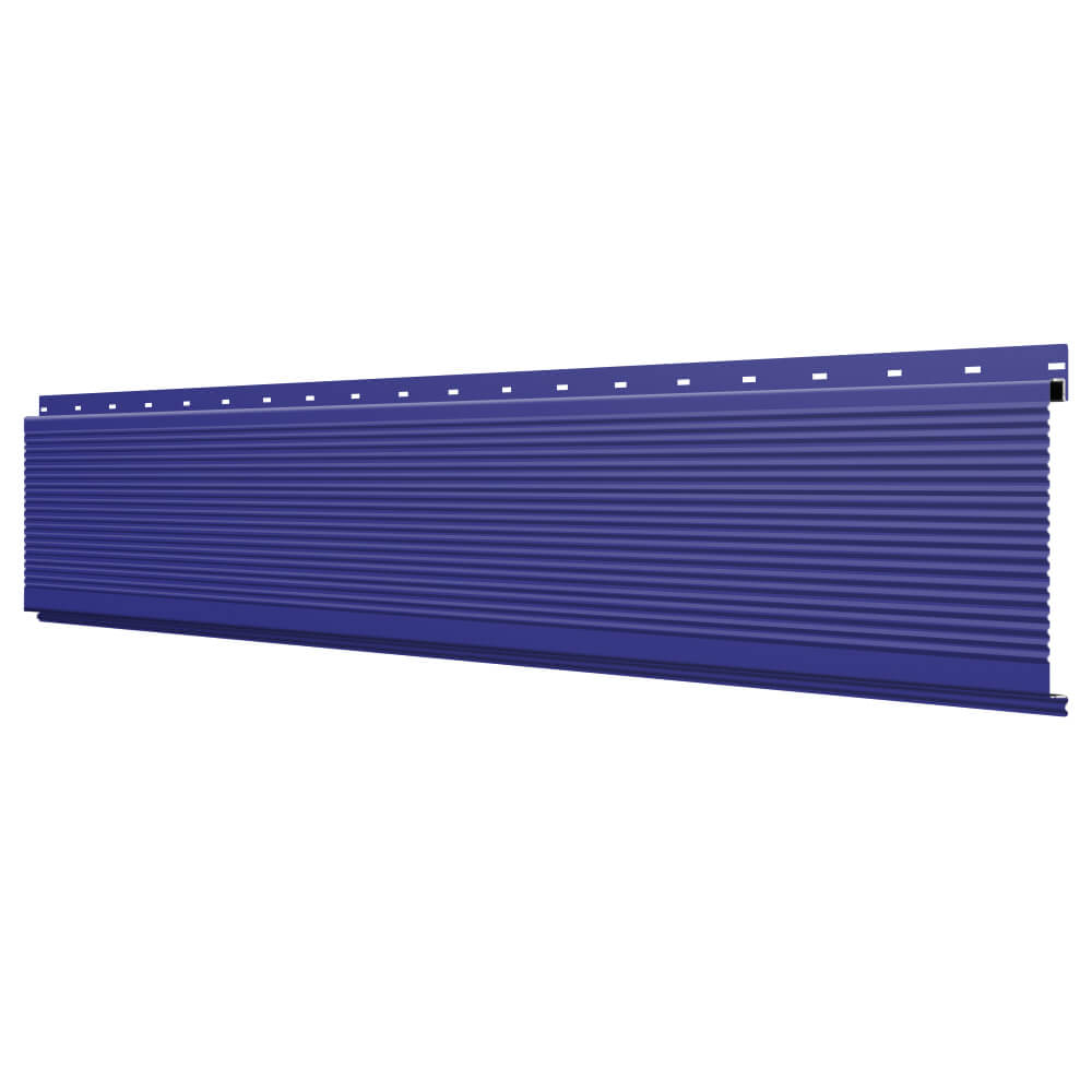 Линеарная потолочно-стеновая панель РИФЛЕНАЯ усиленная цвет RAL5002 Синий Ультрамарин применяется в качестве софитов для подшивы крыши, наружной и внутренней отделки потолков, стен, фронтонов фасада дома в Твери.