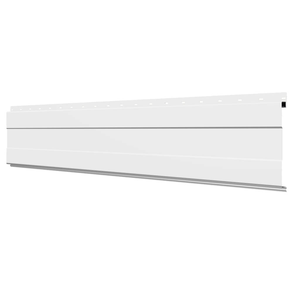 Линеарная потолочно-стеновая панель с ПОЛОСОЙ усиленная цвет RAL9003 Белый применяется в качестве софитов для подшивы крыши, наружной и внутренней отделки потолков, стен, фронтонов фасада дома в Твери.