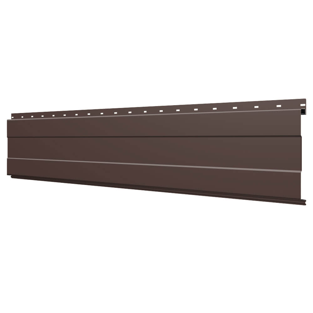 Линеарная потолочно-стеновая панель с ПОЛОСОЙ усиленная цвет RAL8017 Шоколад применяется в качестве софитов для подшивы крыши, наружной и внутренней отделки потолков, стен, фронтонов фасада дома в Твери.