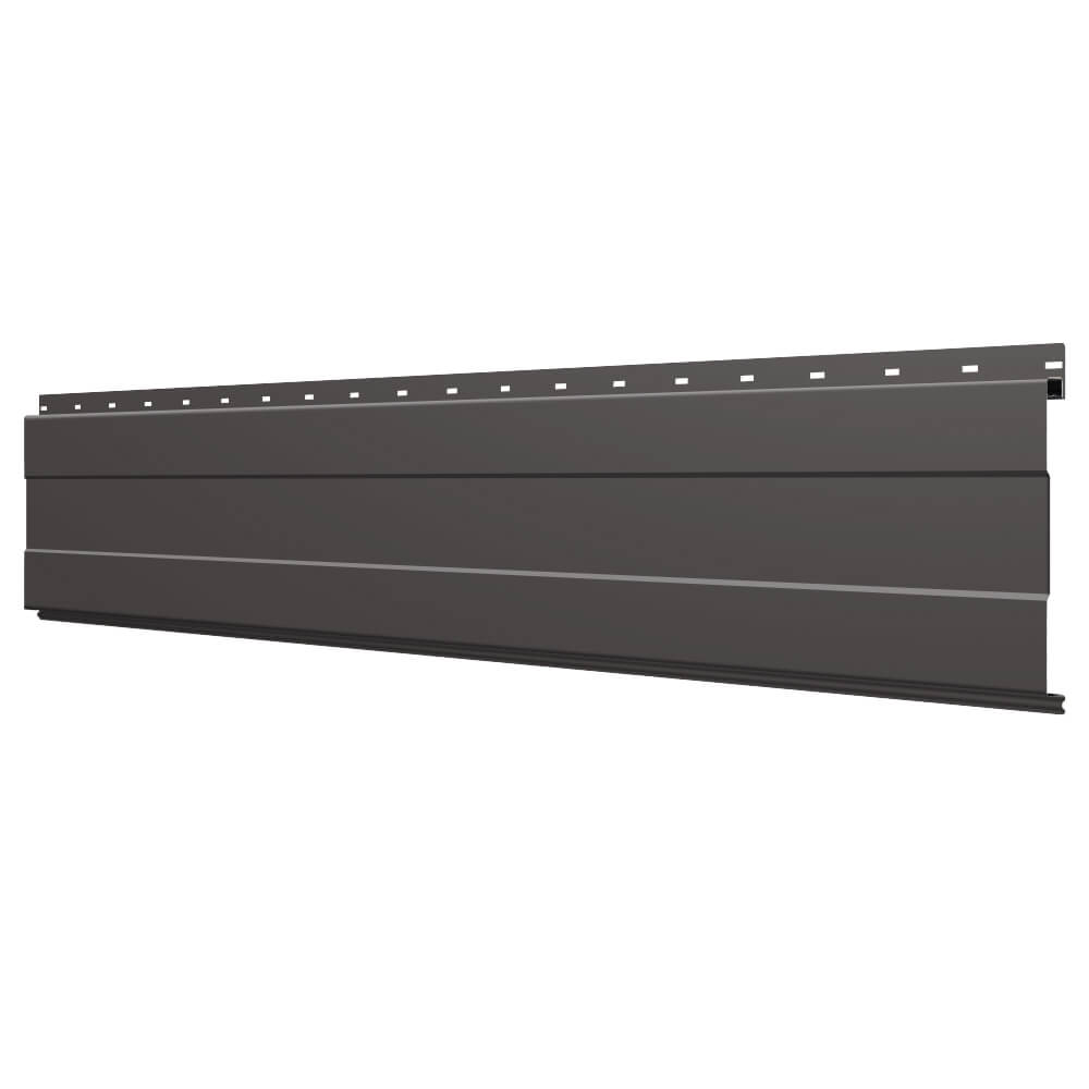 Линеарная потолочно-стеновая панель с ПОЛОСОЙ усиленная цвет RAL8019 Темный Шоколад применяется в качестве софитов для подшивы крыши, наружной и внутренней отделки потолков, стен, фронтонов фасада дома в Твери.