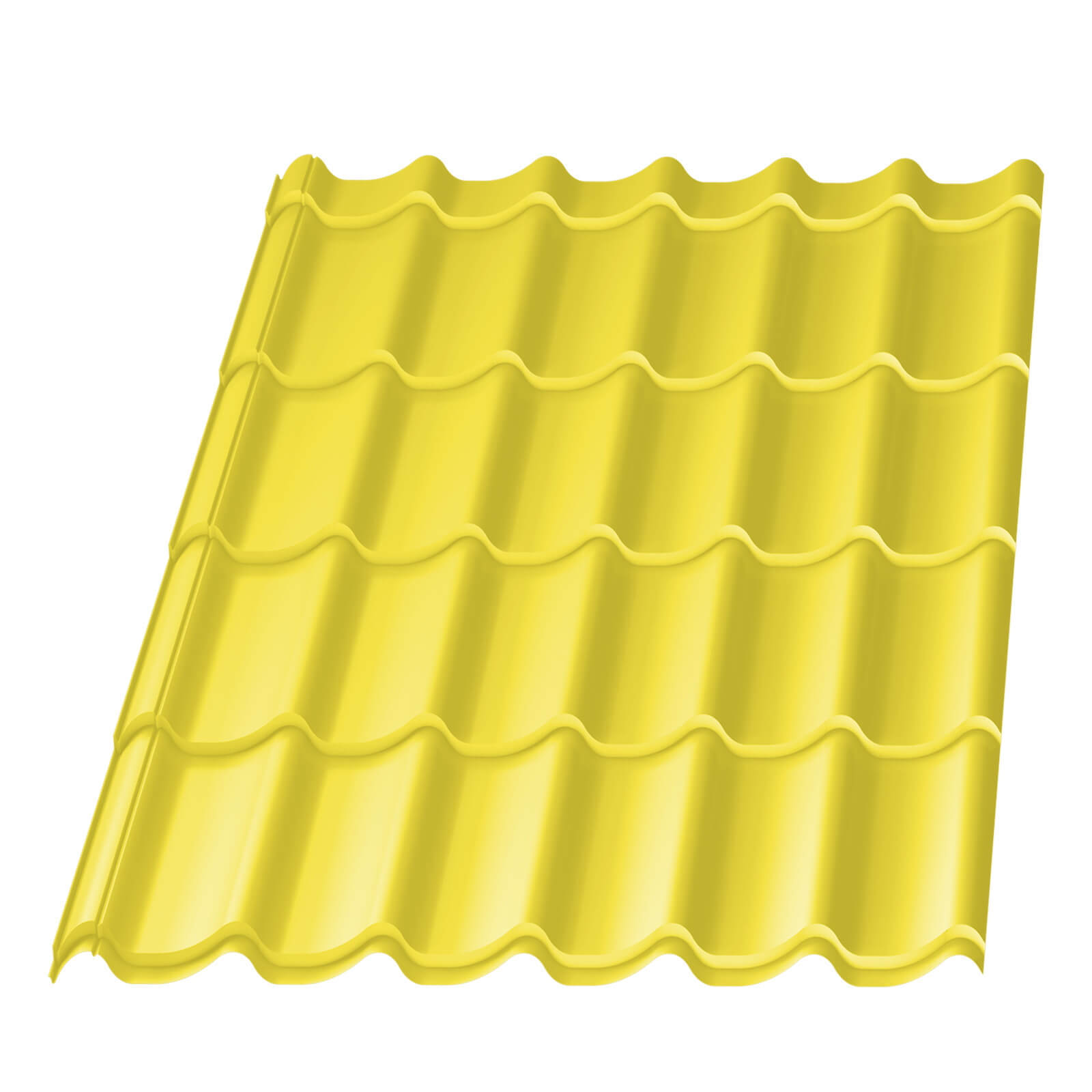Металлическая черепица Меркурий RAL 1018 Желтый имеет профиль внешне на кровле напоминающий классическую керамическую черепицу. Меркурий — это обновленный аналог профиля металлической черепицы для кровли крыши. Форма профиля имеет богатый внешний вид напоминающий небольшие набегающие волны. Лучшие показатели герметизации сделали профиль Меркурий гарантом стабильной и долговременной службы на крышах в Твери. Данный профиль отличается не только своим качеством, но и благородным внешним видом.