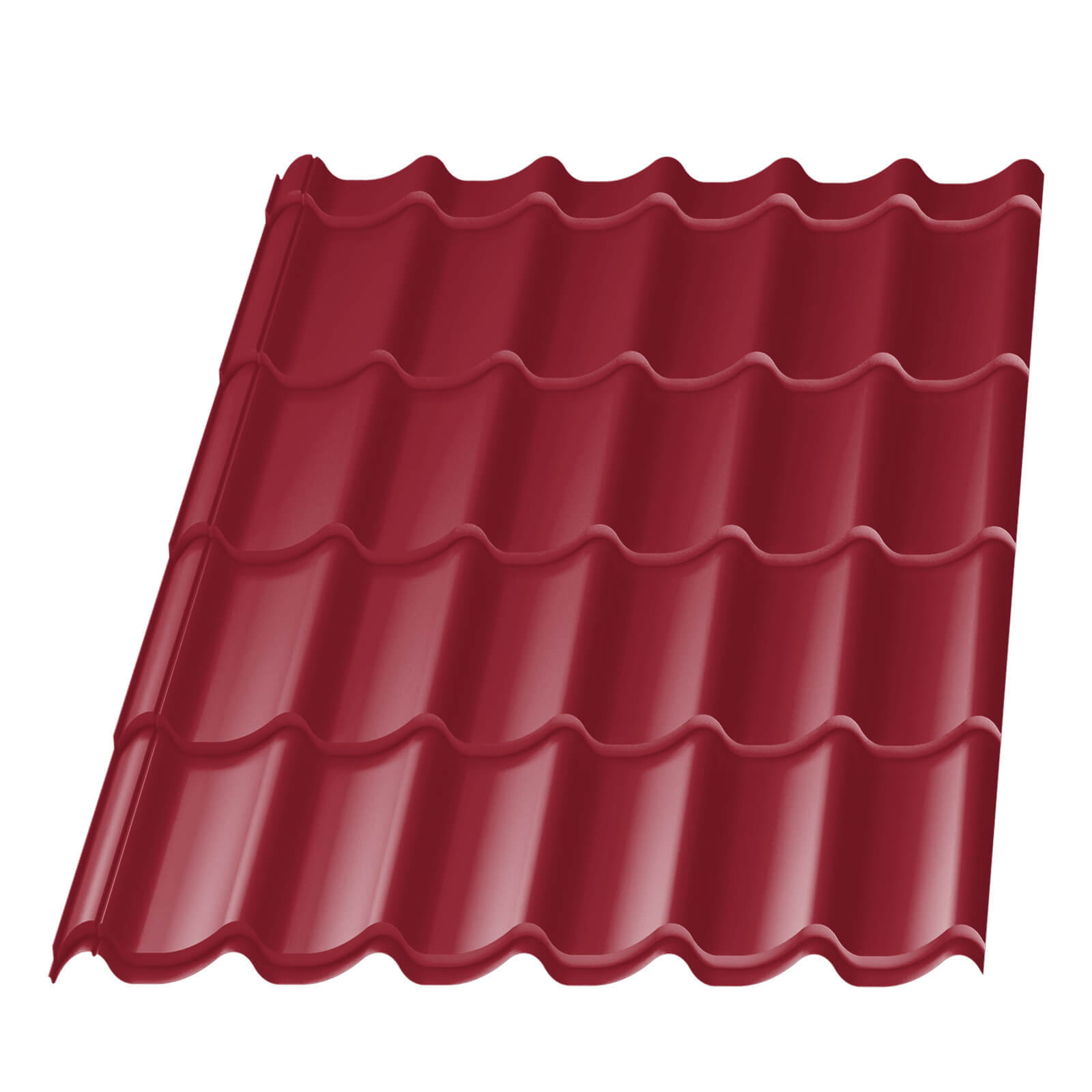 Металлическая черепица Меркурий цвет RAL 3003 Рубин имеет профиль внешне на кровле напоминающий классическую керамическую черепицу. Меркурий — это обновленный аналог профиля металлической черепицы для кровли крыши. Форма профиля имеет богатый внешний вид напоминающий небольшие набегающие волны. Лучшие показатели герметизации сделали профиль Меркурий гарантом стабильной и долговременной службы на крышах в Твери. Данный профиль отличается не только своим качеством и практичностью, но и благородным внешним видом.