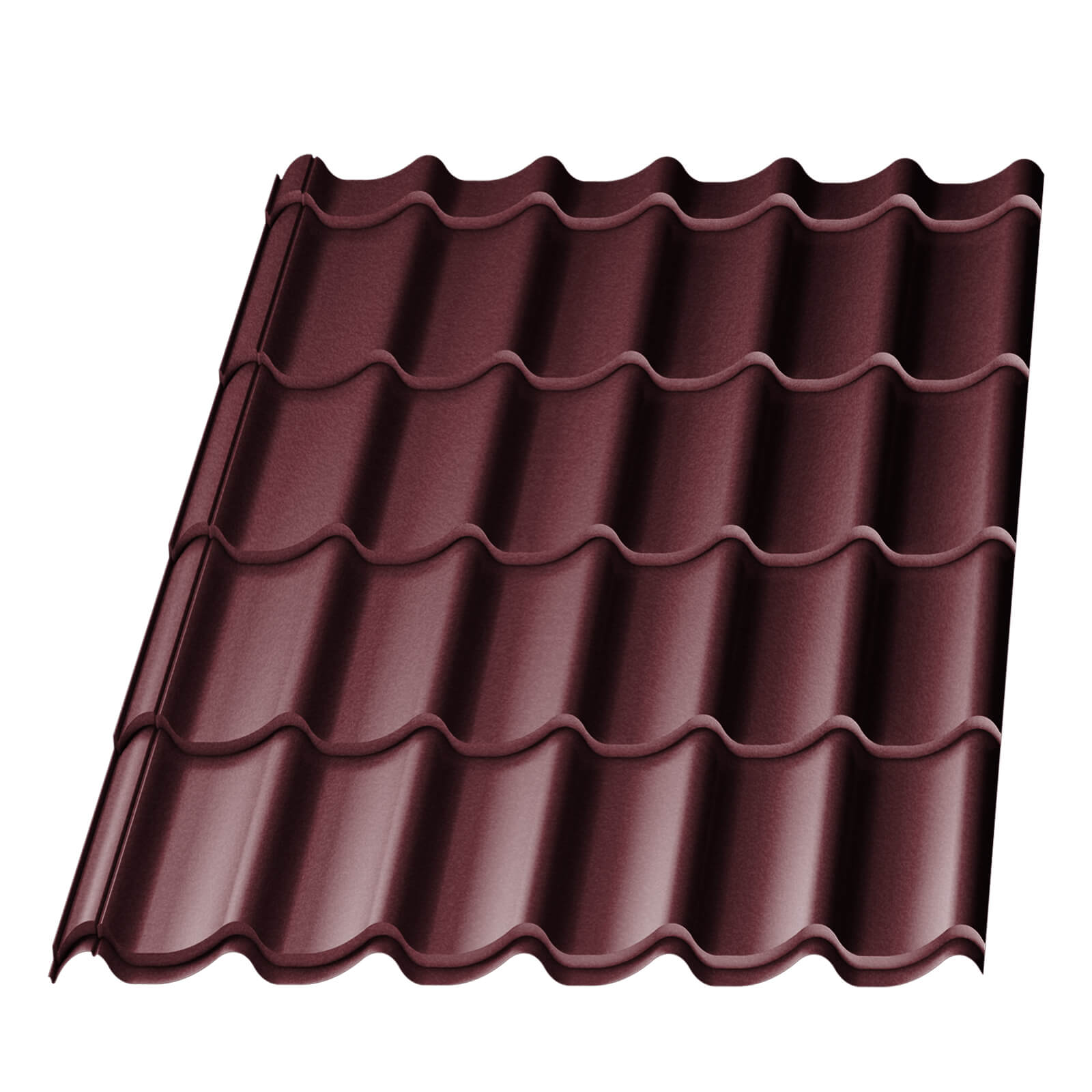 Металлическая черепица Меркурий цвет RAL 3005 Красное Вино Стальной Бархат имеет профиль внешне на кровле напоминающий классическую керамическую черепицу. Меркурий — это обновленный аналог профиля металлической черепицы для кровли крыши. Форма профиля имеет богатый внешний вид напоминающий небольшие набегающие волны. Лучшие показатели герметизации сделали профиль Меркурий гарантом стабильной и долговременной службы на крышах в Твери. Данный профиль отличается не только своим качеством и практичностью, но и благородным внешним видом.