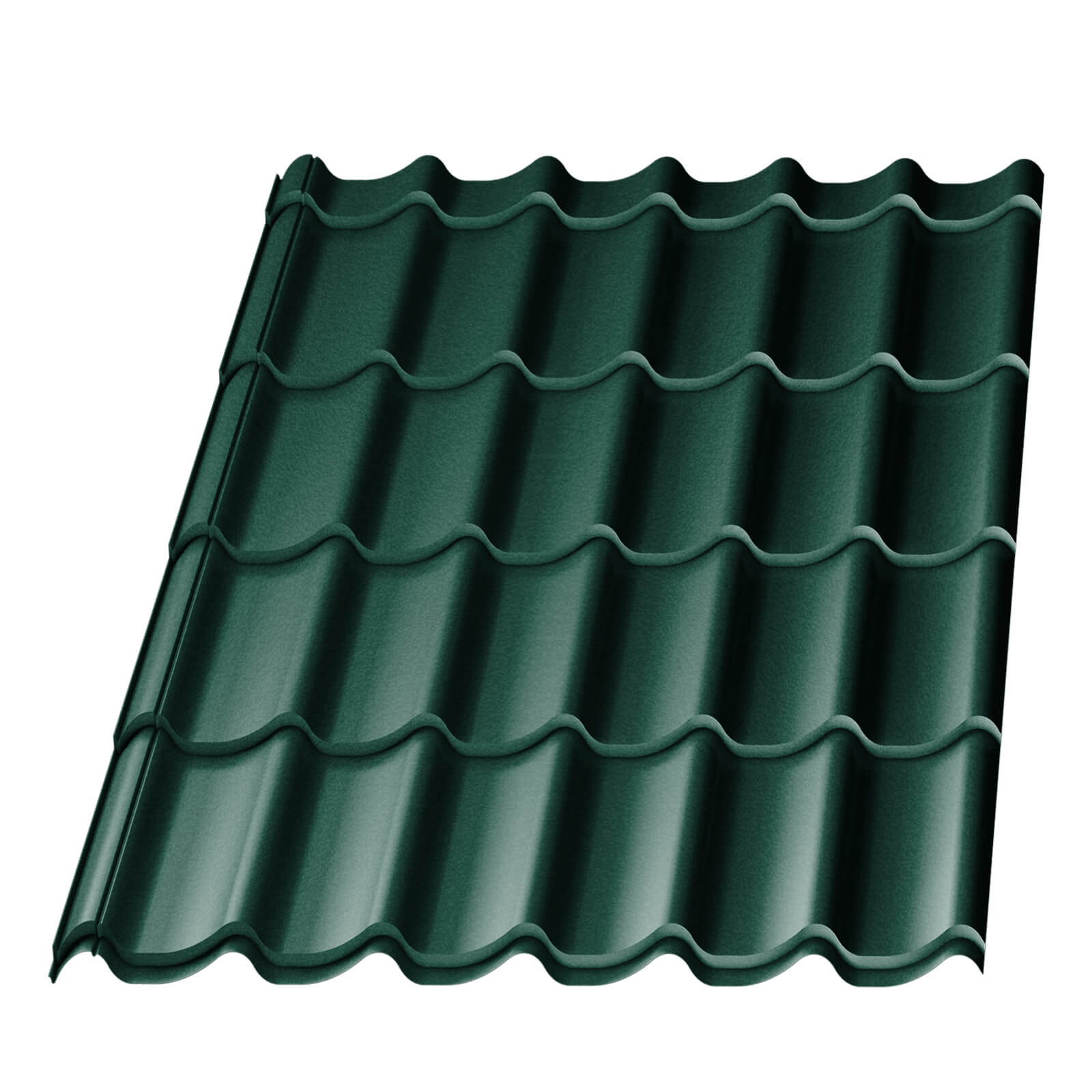 Металлическая черепица Меркурий цвет RAL 6005 Зеленый Мох Стальной Бархат имеет профиль внешне на кровле напоминающий классическую керамическую черепицу. Меркурий — это обновленный аналог профиля металлической черепицы для кровли крыши. Форма профиля имеет богатый внешний вид напоминающий небольшие набегающие волны. Лучшие показатели герметизации сделали профиль Меркурий гарантом стабильной и долговременной службы на крышах в Твери. Данный профиль отличается не только своим качеством и практичностью, но и благородным внешним видом.