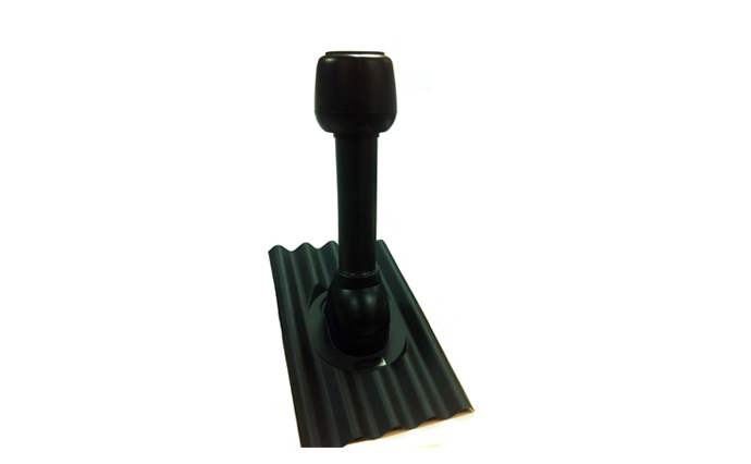 Вентиляционная труба Ондулин оформляет выпуски вентиляции через кровлю, служит для проветривания подкровельного пространства. В комплект доборного элемента входят: основание (проходной элемент), труба, колпак и 4 самореза для крепления трубы к основанию.