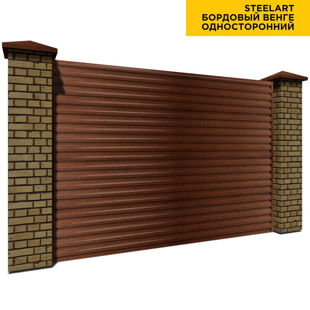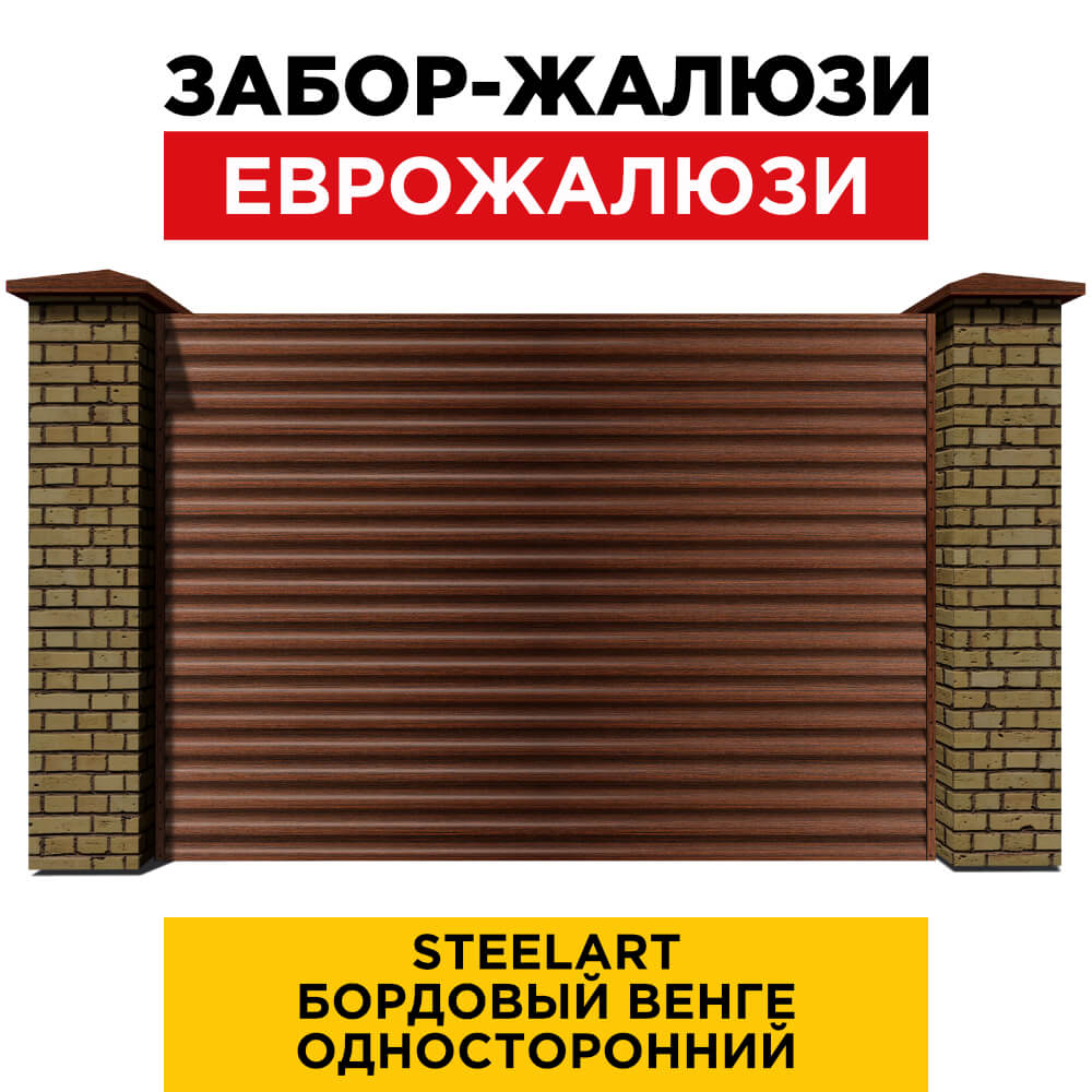 Ламель Еврожалюзи металлическая S-образная, цвет под дерево Бордовый Венге SteelArt Россия одностороннее покрытие, длина любая кратно 1см под заказ - для забора-жалюзи, беседки, перголы в Твери