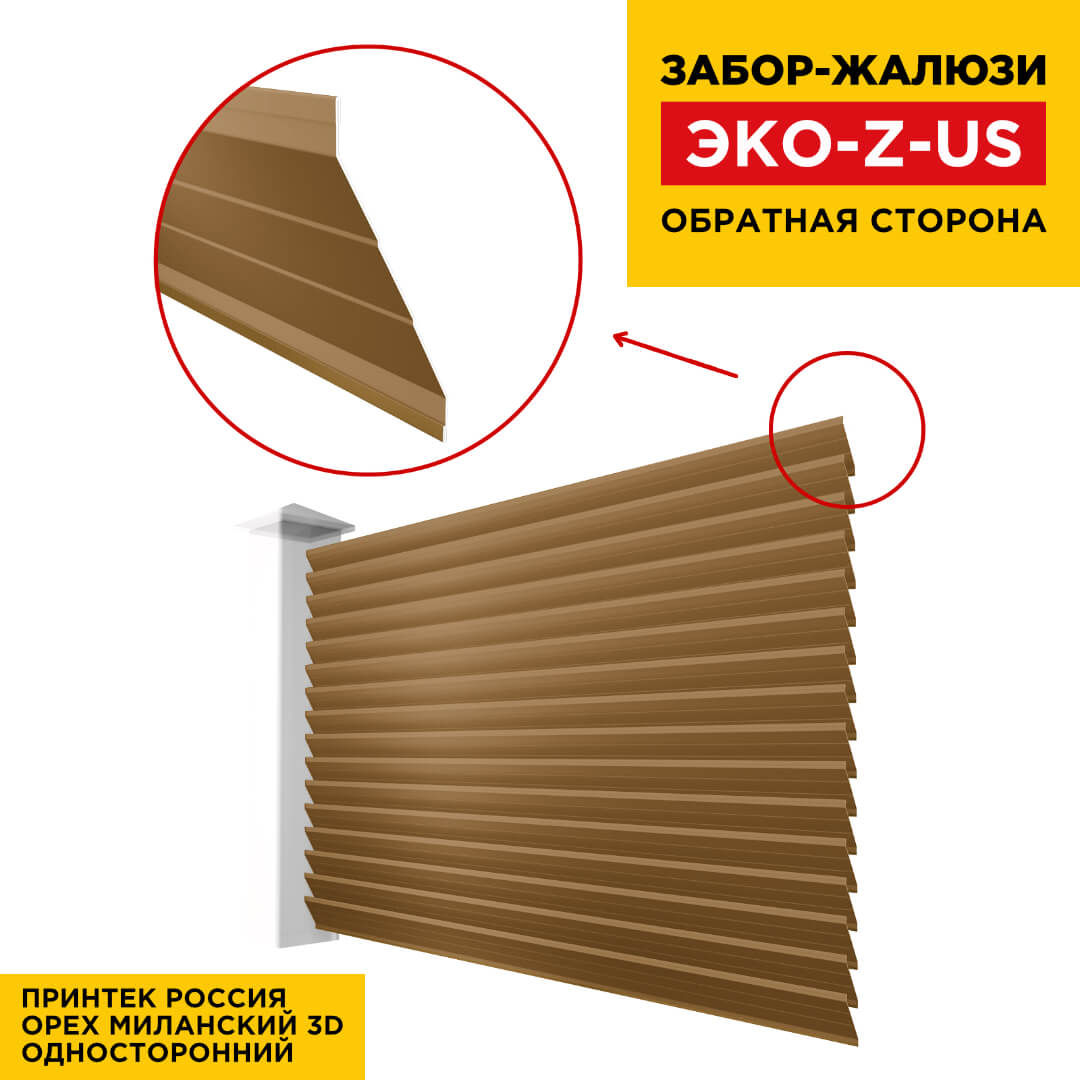 Ламель металлическая Z-образная усиленная ЭКО-Z-US, цвет под дерево Орех Миланский 3D Принтек Россия одностороннее покрытие, длина любая кратно 1см под заказ - для забора-жалюзи, беседки, перголы в Твери