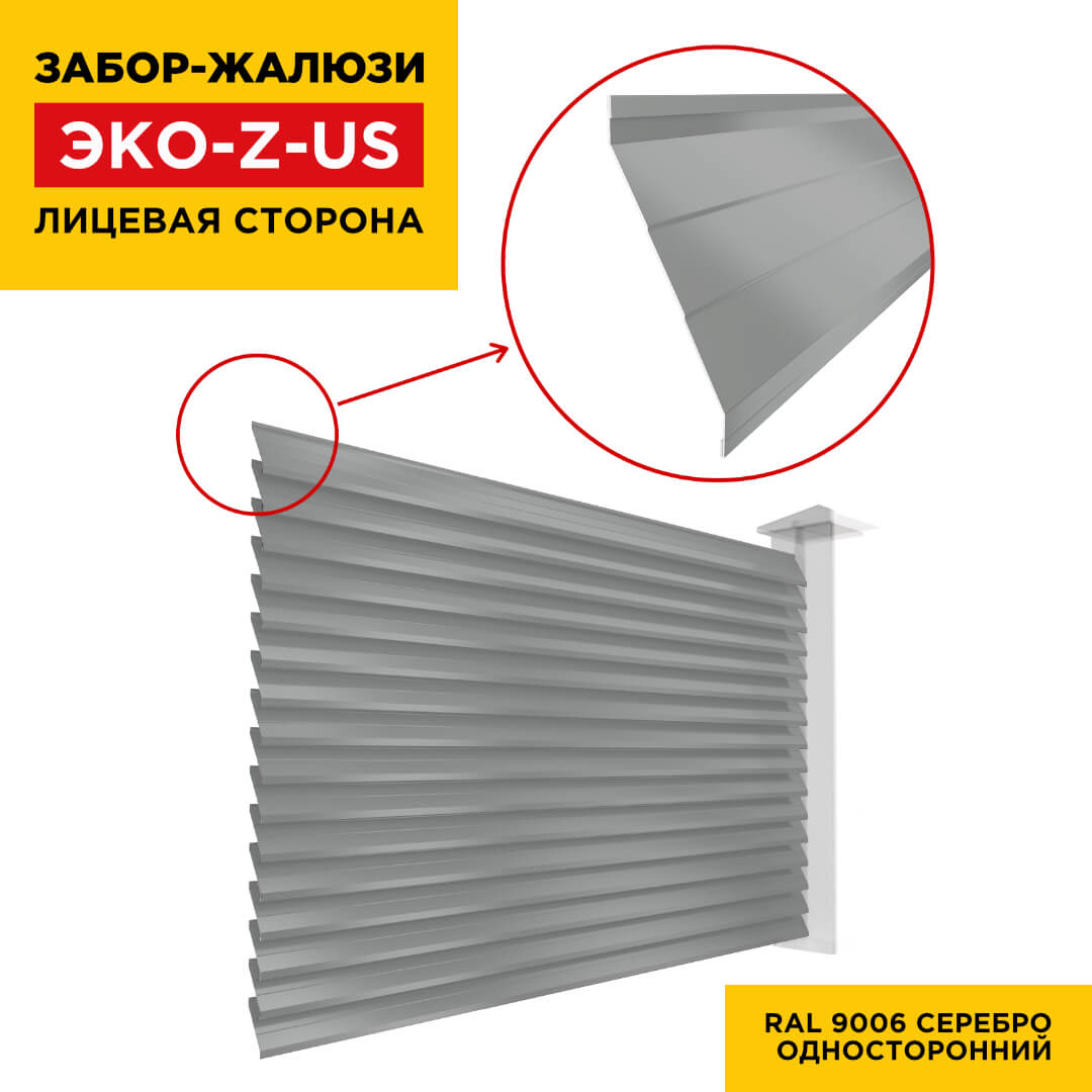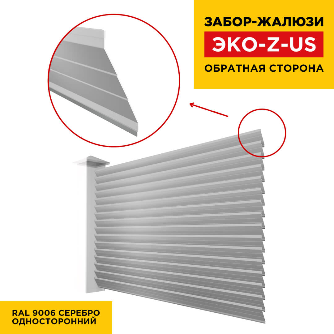 Ламель металлическая Z-образная усиленная ЭКО-Z-US, цвет RAL 9006 Серебро, длина любая кратно 1см под заказ - для забора-жалюзи, беседки, перголы в Твери