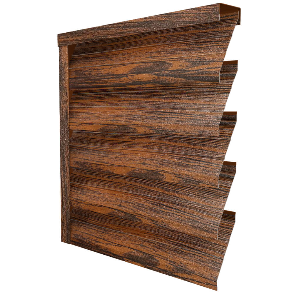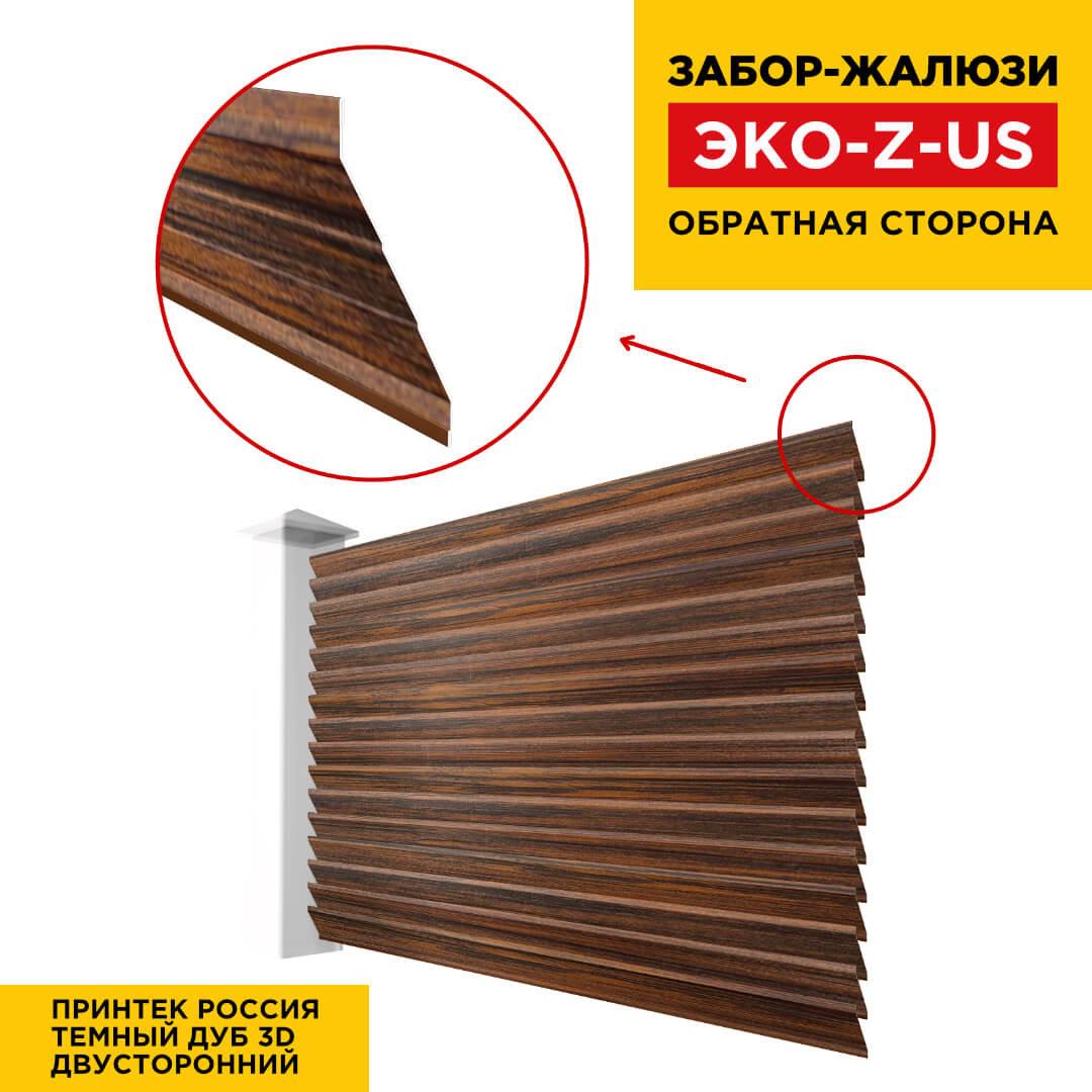 Ламель металлическая Z-образная усиленная ЭКО-Z-US, цвет под дерево Темный Дуб 3D Принтек Россия двухстороннее покрытие, длина любая кратно 1см под заказ - для забора-жалюзи, беседки, перголы в Твери.
