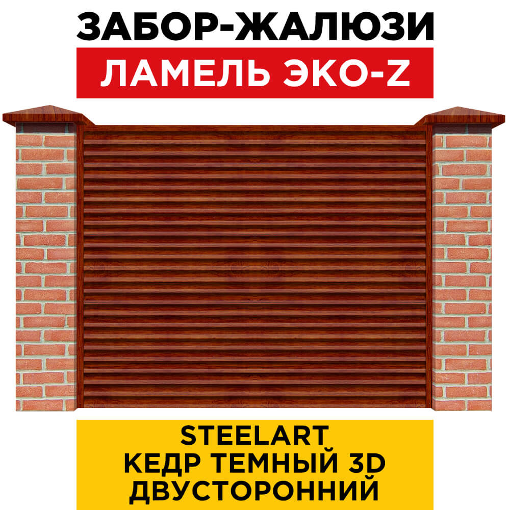 Ламель металлическая Z-образная простая ЭКО-Z, цвет под дерево Кедр Темный 3D SteelArt двухстороннее покрытие, длина любая кратно 1см под заказ - для забора-жалюзи, беседки, перголы в Твери.
