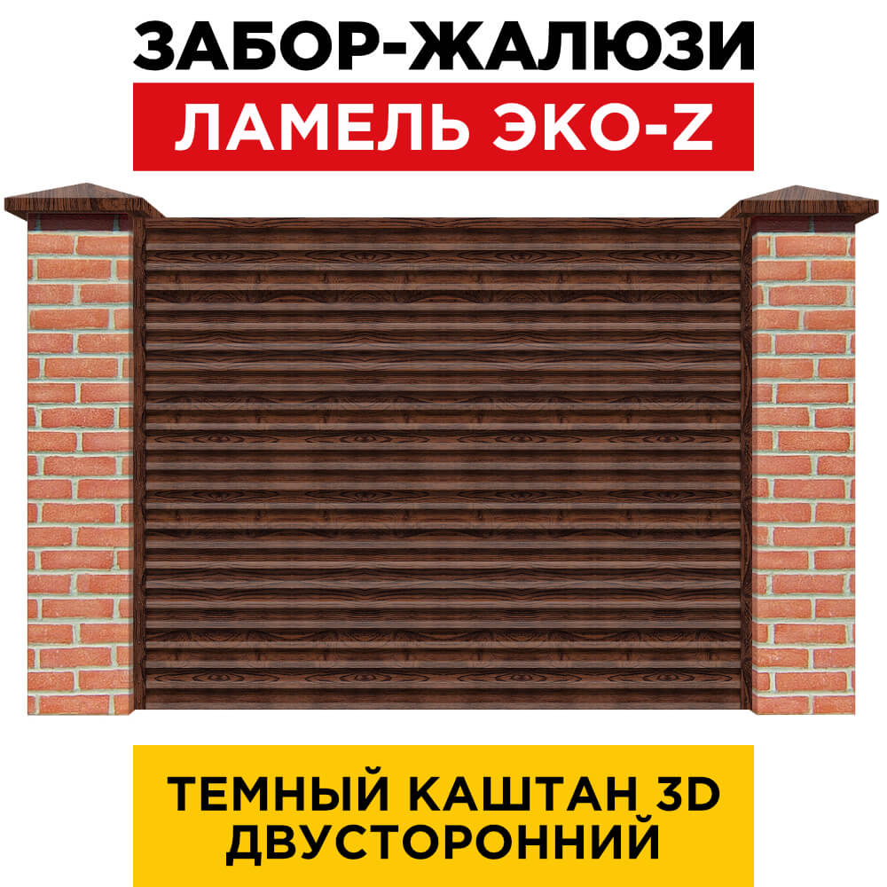 Ламель металлическая Z-образная простая ЭКО-Z, цвет под дерево Темный Каштан 3D Принтек двухстороннее покрытие, длина любая кратно 1см под заказ - для забора-жалюзи, беседки, перголы в Твери