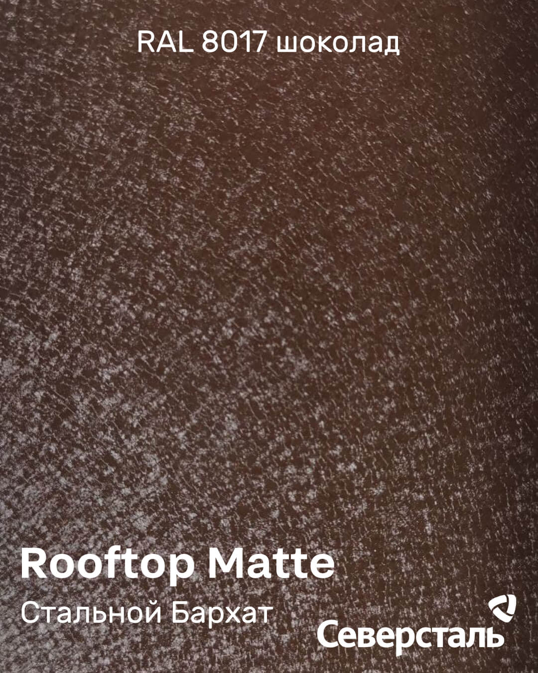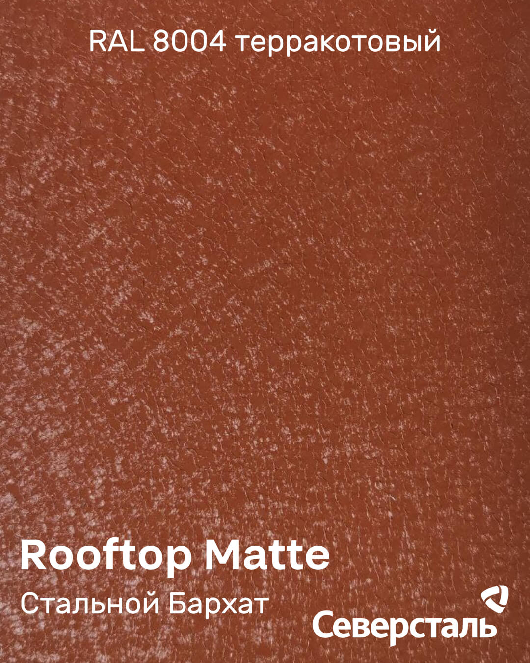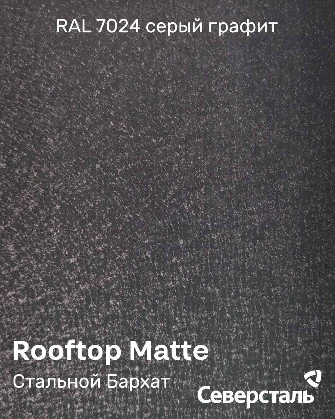 Металлочерепица Rooftop Matte Стальной Бархат в Твери - полный каталог и палитра доступных цветов металлочерепицы Монтеррей, Каскад, Банга, Арарат, Геркулес, Геркулес модульный с покрытием Rooftop Matte (Стальной Бархат) производства Северсталь для кровли крыши в Твери.